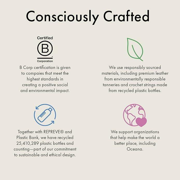 - ENVIRONMENTALLY CONSCIOUS DESIGN: Bag exterior is hand-crocheted. Bag interior is PETA-approved, Vegan Certified, Repreve lining made from recycled materials including plastic bottles